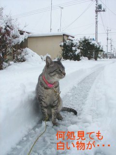 2001年1月8日群馬県の平野部に、この冬初めての雪が降った時のマイケルの様子をご覧ください。