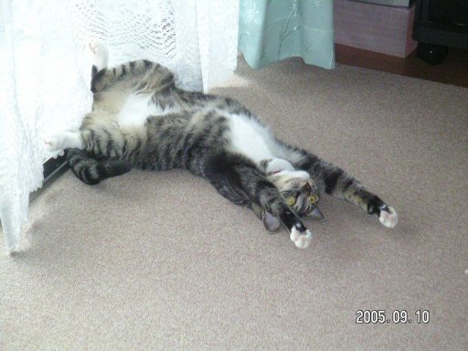 ほんとにのびのびしてますね〜♪ うら返りでのび〜る、ルルちゃん、う〜んお腹を触りたいかも〜 のんびりした猫ライフを送っているルルちゃんでした〜 ルルちゃんの近況を知らせてくれた飼い主さんありがとうございます(^^)