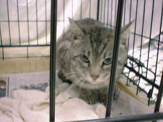 ’00/6/10 この所元気が無いので今日動物病院で見てもらいました、原因は口内炎で、 痛くて余り食事が出来なかったからみたいです、診察直後のマイケルです。 3本も注射するなんて!病院なんて大嫌いだ!!