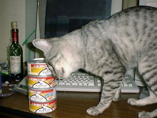’00/6/13 帰って来たMasaにスリスリした後、猫缶にまで・・・Masaは缶詰と同じか?