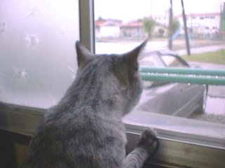’00/6/14 網戸越しに、外の様子を覗うマイケル。その夜網戸を破って・・逃げた!
