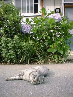 ’00/6/30 朝の散歩でゴロンするマイケルです.マイケルは、鳥の天敵らしく スズメやヒヨドリなどが警戒します(このときもズズメが騒いでました) 朝の散歩でゴロンは最高だ!