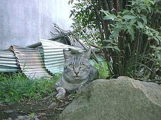 ’00/7/20 自分だけで散歩したいのか、Masaが見えなくなるまでこの体勢で待ってます。