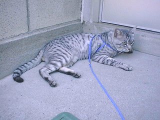 ’00/8/6 リードを付けての初散歩、何とか慣れてくれないかな。