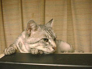 ’00/8/14 昨日の夜、窓の外に居るライバルに興奮したのか、Masaの足をガブリと噛みました 足は腫れるは、痛いはで、今度はMasaが病院通いです(~~;)。 ストレスが溜まってんだよ!(去勢するまで仕方が無いんです・・・でも、痛いな〜!)