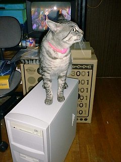 '00/11/9 組み立て中のPCの上にマイケルが・・・こら〜!上に乗るな!!