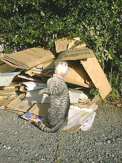 '00/11/11 リサイクルの為に集められた、ダンボールに匂い付けするマイケル