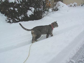 1/01/08 今日は今年初めての雪が降りました、マイケルに無理やり散歩を付き合ってもらった。