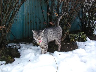 '01/01/10 まだまだ雪が残っている、雪に行く手を阻まれるマイケル。
