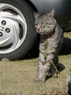 ’01/4/4 今朝散歩中にマイケルが、大きく背伸びしたと思ったら、 突然 ウワ〜オ!と物凄い声で鳴いた、その直後に、 物影から「なんちゃってマイケル」が飛び出して行った・・・ 「テリトリー」