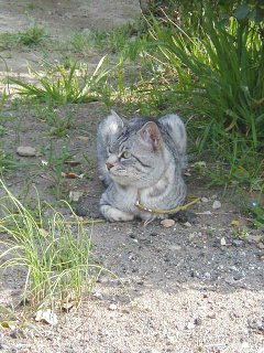 お散歩できました、暖かいので日陰で一休みするマイケル。