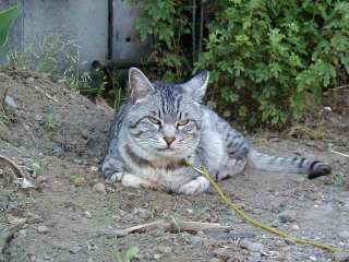 ’01/6/4 今日も朝から天気が良く暑いので、散歩中日陰で一休み。